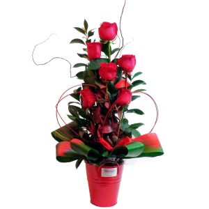 Centro de 6 rosas con base decorativa